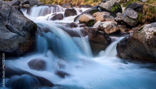 dynamic abstract flowing stream waterfall with rocks and long exposure