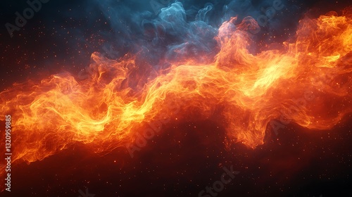dynamic, glowing, fire, flames, warm, orange, red, hue, black, background