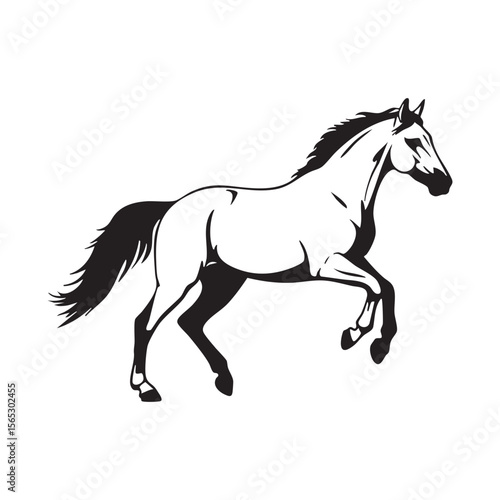 horse, silhouette, animal, equine, mammal, running, galloping, motion, speed, power, grace, elegance, black, and, white, graphic, art, design, illustration, symbol, sport, freedom, wild, nature, farm animal, farm, ranch, fast horse, mare, foal, mane, tail, leg, hoof, background