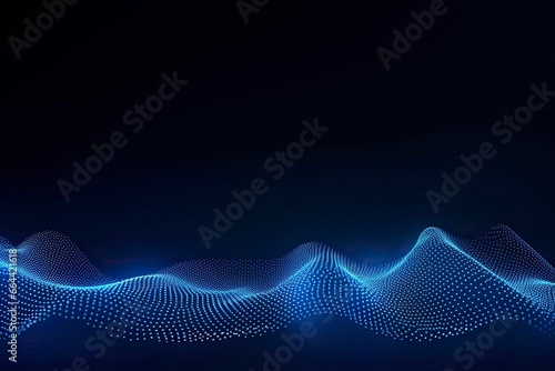 Dynamic blue particle wave. Abstract sound visualization. Digital structure of the wave flow of luminous particles.