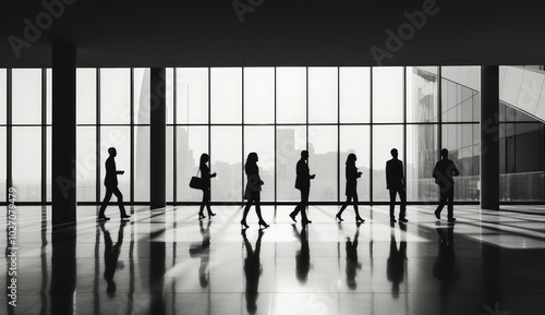 business, corporate, silhouette, office, professional, modern architecture, teamwork, walking, monochrome, businessperson, shadow, colleague, city landscape, window, urban, workday, bustling, employment, economy, skyscraper, interior design, monochromatic, man, woman, mobility, workflow, efficient, pace, movement, strategy, manpower, anonymity, executive, hustle and bustle, rush hour, enterprise