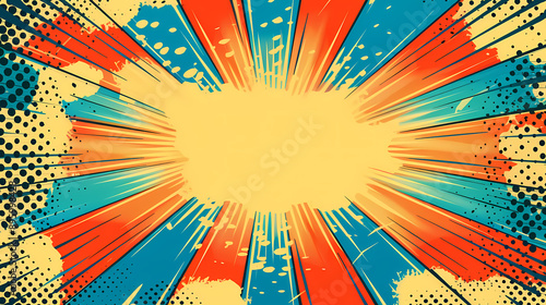 Dynamic comic book explosion with vibrant colors and radial burst pattern.