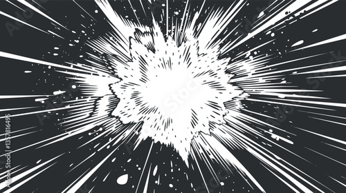 explosion, burst, comic, manga, art, graphic, dynamic, black, white, energy, impact, illustration, splash, line, motion, abstract, design, background, force, power