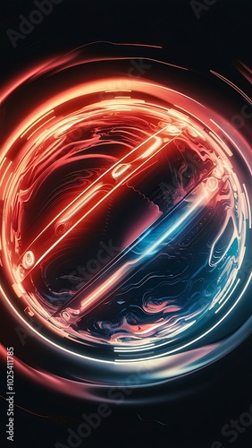 Dynamic fluid gradient techno sphere. Mesmerizing 3D effect sphere pulsating with vibrant colors, blending light and shadows for captivating and futuristic visual spectacle