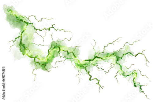Dynamic green lightning bolt with intricate electric patterns on a white background.