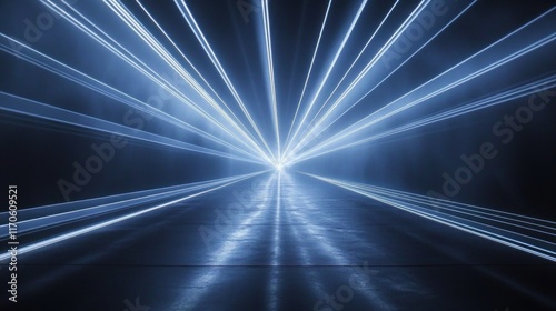 Dynamic Laser Light Show Abstract Art with Cool Blue and Stark White Beams in Dark Space