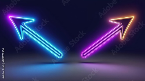 Dynamic neon arrows indicating direction abstract digital art studio environment creative concept