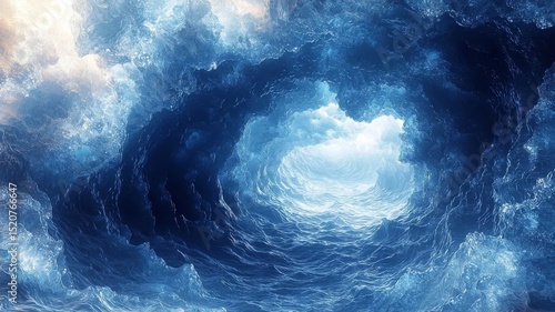 Dynamic Ocean Wave: A mesmerizing view of a powerful wave curling, showcasing vibrant blues and whites, perfect for marine-themed projects and oceanic inspiration.