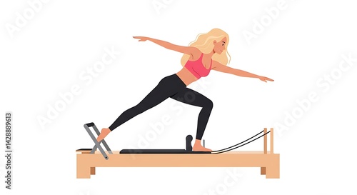 Dynamic Pilates workout on reformer machine, enhanced core strength and flexibility
