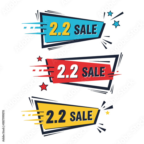 Dynamic Sale Announcement Banners for a Promotional Event Displaying 2.2 Sale Offers Visually Engaging Design