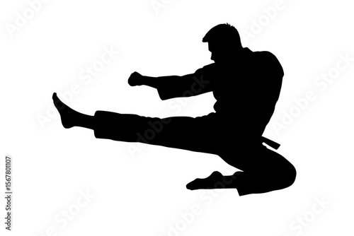 silhouette, martial art, kick, fighter, athletic, black-and-white, karate, judo, self protection, physical fitness, training, energy, agility, strength, practitioner, stance, combat, sport, jump, performance, flexibility, kickboxing, discipline, sharpened, power