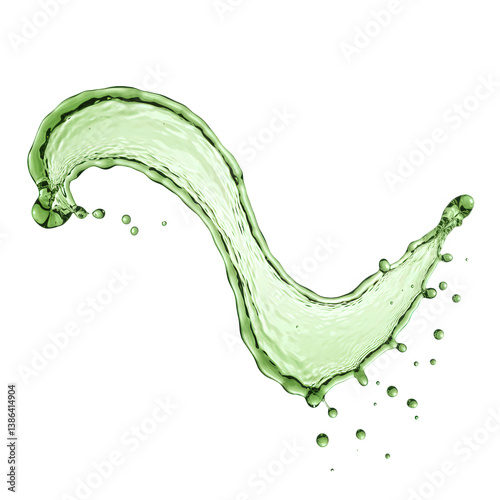 splash, liquid, water, fluid, green, curve, flowing, motion, dynamic, wave, droplet, drop, ripple, stream, freshness, purity, clean, clear, bright, vibrant, smooth, glossy, wet, water, serpentine, shape, abstract, design, element, isolated, photo, image, illustration, graphic, single, lime, pastel, refreshing, cool, white, background, light