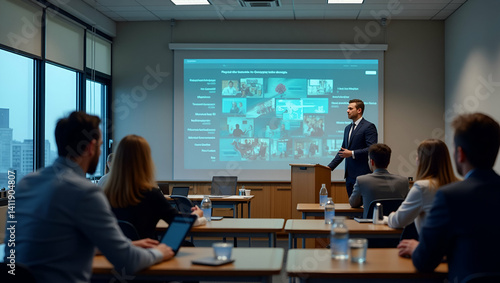 Dynamic Virtual Classroom Sessions: Engaging Learning with Distinguished Maestros in Interactive Digital Environments - Photo Stock Concept with Left Space