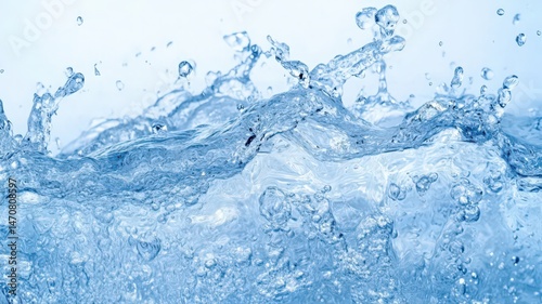 Dynamic Water Splash Against Light Blue Background Captured with Clarity and Motion for Refreshing Effect Conveys Purity