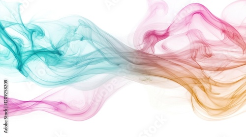 Dynamic waves of color explosion with swirling smoke in electric shades of pink, teal, and gold. The textures flow in intricate patterns, creating movement and depth.