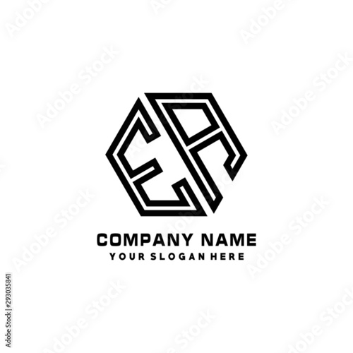 EA initial letters, hexagon logo minimalist art lines, black color