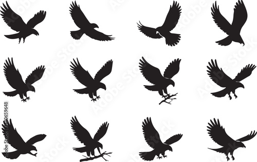 Eagle Silhouette Icons Collection in Black Vector Style for Wildlife, Nature, and Freedom Designs