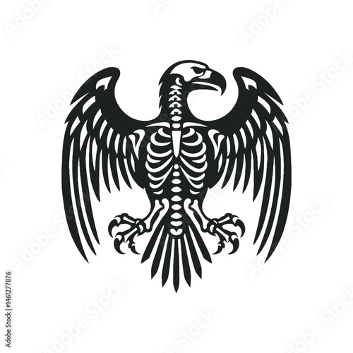 eagle, skull, skeleton, vector, illustration, silhouette, bird, bird of prey, predator, animal, design, tribal, tattoo, aggressive, fierce, head, art, graphic, mascot, black, white, stylised, outline, ink, logotype, emblem, decorative, printable, t-shirt, sticker, poster, abstract, creative, angry, beak, feather, sharp, edgy, intense, strong, unique, deadly, horror, fantasy, mythical, bone, neck