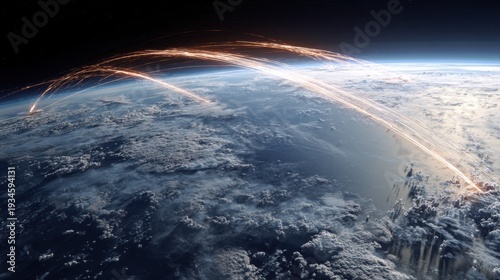 earth, space, planet, atmosphere, cloud, sky, light, streak, line, connection, global, network, travel, speed, motion, abstract, futuristic, energy, orbit, earth, digital, science, technology, illumination, glowing, perspective, transport, dynamic, datum, communication, universe, galaxy, cosmos, international, navigation, infrastructure