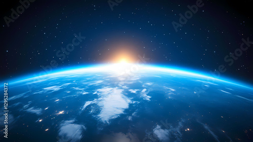 earth, space, sunrise, orange, halo, blue, white, star, glowing, planet, sky, atmosphere, vibrant