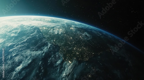 Earth's Curve with White Clouds and Stars from Space