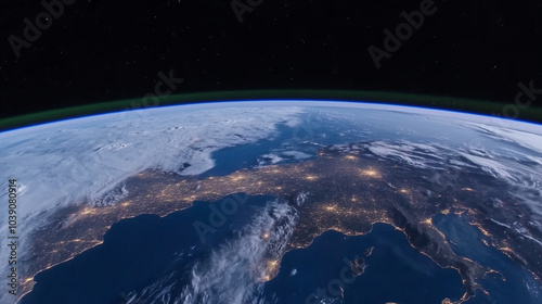 earth, horizon, space, aurora, borealis, planet, atmosphere, star, night, orbit, satellite, landscape, sky, glowing, blue, curvature, cosmos, universe, astronomy