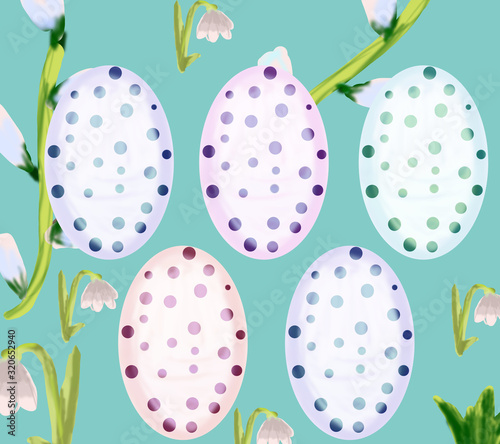Easter bunnies and easter eggs. illustration