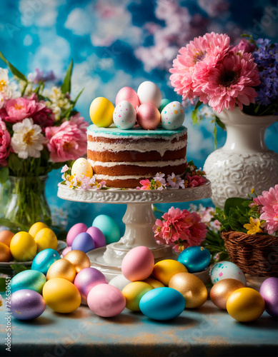 Easter bunny Easter cake and eggs. Selective focus.