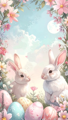easter, rabbit, rabbit, egg, flower, spring, holiday, pastel, white, pink, blue, yellow, green, floral, vibrant, cute, adorable, children, celebration