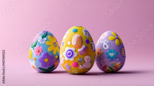 Easter decoration handmade crafts seasonal centerpieces. Colorful Easter Egg Decorations Artistic Composition on Pink Background Charming Holiday Artwork.