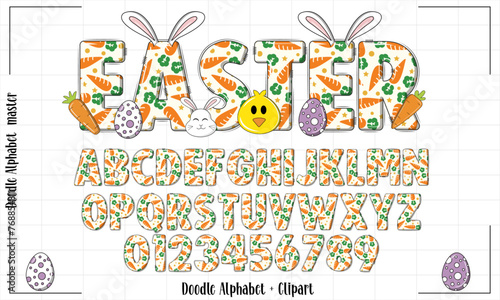 Easter Doodle Delights: Alphabet & Clipart Set for Adobe Stock - Perfect for Spring Designs