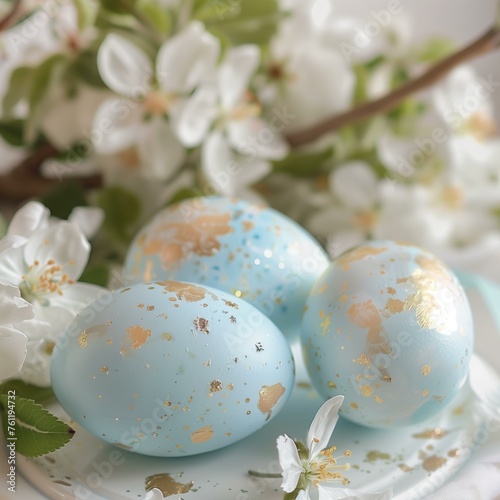 easter, gold, decoration, apple blossom, flower petals, white, purity, background, egg, decoration, flower, flower, blossom, tradition, culture, blue, spring, freshness