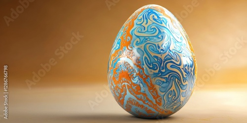 Easter egg with high-gloss ceramic and intricate blue patterns on a warm background