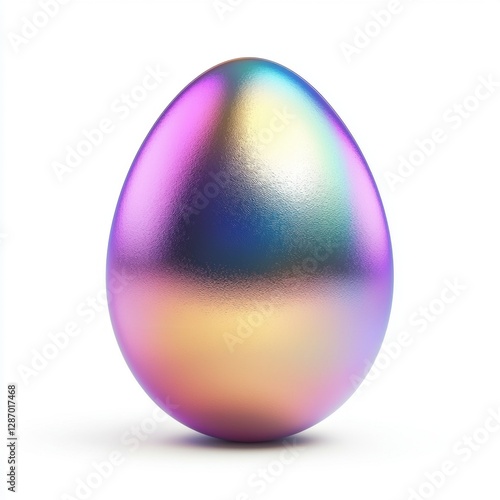 Easter egg with iridescent pearl shimmer isolated on white background
