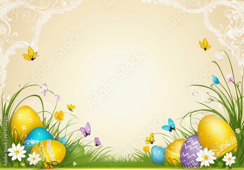 easter, grass, egg, spring, holiday, egg, nature, flower, sky, decoration, celebration, vector, season, green, design, illustration, meadow, colourful, colours, yellow, card, floral, symbol, field, sun