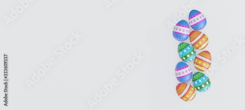 Easter eggs with colorful stripes and polka dots. White background. 3d rendering.