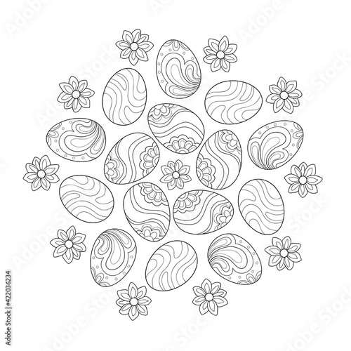egg, mandala, colouring, easter, flower, pattern, illustration, design, isolated, floral, wallpaper, art, rose, abstract, vintage, decoration, leaf, vector, nature, ornament, retro, white, spring, paper, decorative, decor, textile