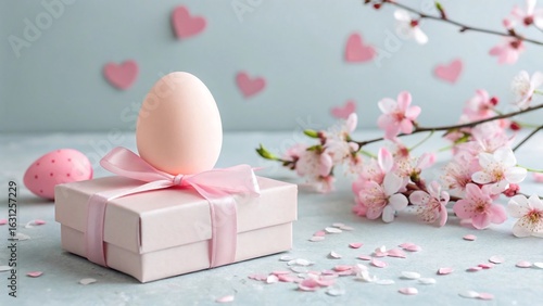 easter, egg, gift, present, box, pink, blossom, cherry, spring, holiday, celebration, decoration, floral, flower, nature, pastel, light, blue, background, sweet, delicate, romantic, surprise, springtime, seasonal, festive, traditional, cute, beautiful, fragile, soft, joy