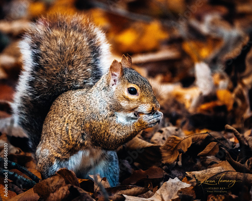squirrel, rodent, wildlife, nature, animal, forest, timberland, autumn, fall, leaf, forest floor, feeding, eating, foraging, wild animal, mammal, closeup, north america