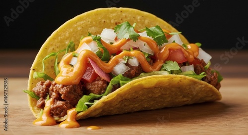 taco, eating, filling, preparing, serving, containing, looking, close, studio, bright, cookery, wooden, table, delicious, mexican, food, dish, vegetable, meat, ground, lettuce, tomatoes, onion, cilantro, topping, sauce, yellow, orange, brown, green, white, red, snack, meal, lunch, dinner, eatery, cooking, concept, fast, fresh, ingredient, single, isolated