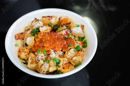 prawn, shrimp, grilled, japanese food, sushi, epicure, roe, fresh, sashimi, fish, healthy, meal, delicious, rice, raw, cookery, japanese, bowl, mixed, wasabi, background, closeup, food, dinner, seaweed, asian, eatery, seafood, japan, tuna, don, tasty, salmon