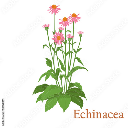 Echinacea tea. Illustration of a plant in a vector with flowers for use in the cooking of medicinal herbal tea. Without outlines.