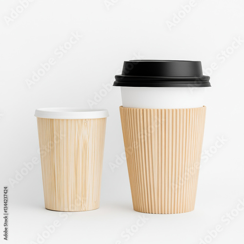 Eco friendly bamboo coffee cups two sizes, showcasing sustainable design and modern aesthetics, perfect for environmentally conscious consumers