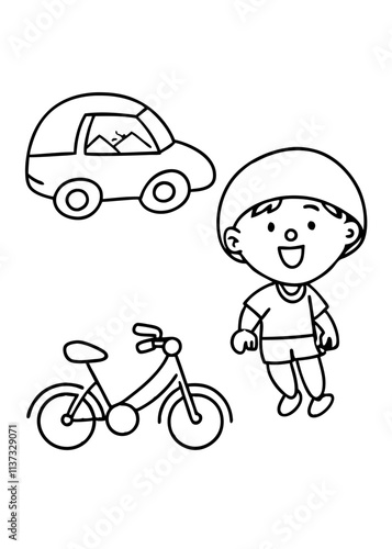 Eco friendly kid riding a bike climate change Line Art coloring book Vector design