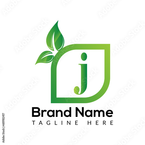 Eco Logo On Letter J Template. Eco On J Letter, Initial Eco, Leaf, Nature, Green Sign Concept