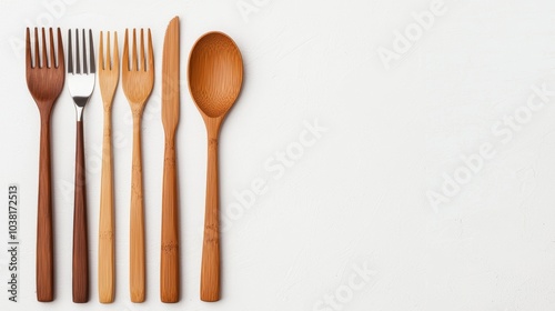 zero, waste, concept, eco, friendly, bamboo, cutlery, set, white, background, sustainable, living, fork, knife, spoon, environment, green, lifestyle, recyclable, utensil, natural, organic, clean, minimalist, kitchen, dining, tool, wooden, biodegradable