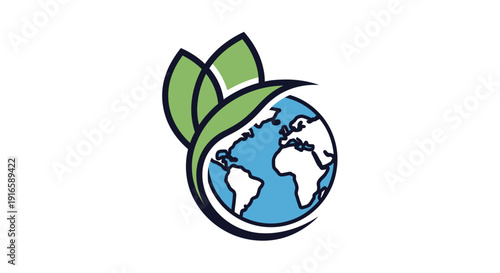 Eco-friendly Earth Globe with Green Leaves Symbol.