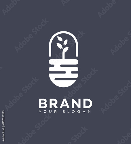 EcoFriendly Growth Capsule Brand Logo Design Minimalist Plant