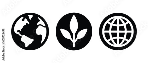 earth, globe, nature, leaf, plant, sustainability, environment, environmentally friendly, green, conservation, black-and-white, icon, vector, illustration, design, graphic, minimalistic, symbolic, recognizable, clean, simple