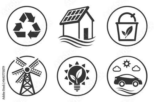Ecofriendly icons for sustainable living and renewable energy.